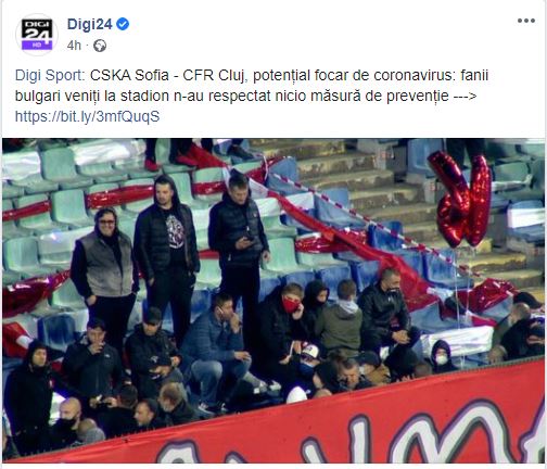Partida dintre ȚSKA Sofia și CFR Cluj, încheiată cu scorul de 2-0 în favoarea echipei lui Dan Petrescu, s-a disputat în prezența a peste 12.000 de spectatori, conform siteului oficial al clubului clujean. Telespectatorii români au putut vedea cu ochii lor cum bulgarii nu au respectat nicio distanțare socială, cântând, strigând la un meci de fotbal transmis și peste hotarele țării lor.