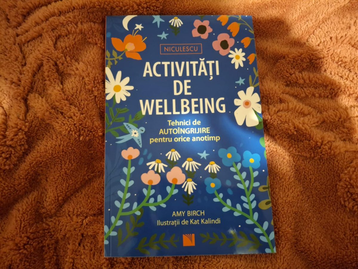 „Activități de wellbeing – tehnici de autoîngrijire pentru orice anotimp”, redactată de Amy Birch, nu își propune să încarce cititorul cu teoria stării de bine, cu importanța, beneficiile sau impactul acestui concept. Din contră, având un design care încântă vizual și un text lejer și ușor de perceput, cartea propune diverse activități și exerciții menite să genereze o stare de bine prin aplicarea lor. Așa cum o precizează și titlul, activitățile sunt grupate pe anotimpuri, punându-se accent pe variatele forme de conexiune cu natura sau pe cele de mindfulness.