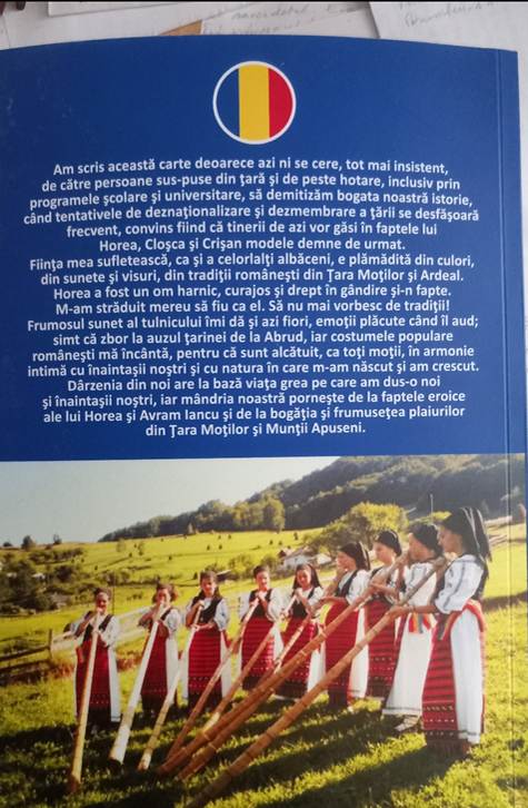Am scris această carte deoarece azi ni se cere, tot mai insistent, de către persoane sus-puse din țară și de peste hotare, inclusiv prin programele școlare și universitare, să demitizăm bogata noastră istorie, cînd tentativele de deznaționalizare și dezmembrare a țării se desfășoară frecvent, convins fiind că tinerii de azi vor găsi în faptele lui Horea, Cloșca și Crișan modele demne de urmat.